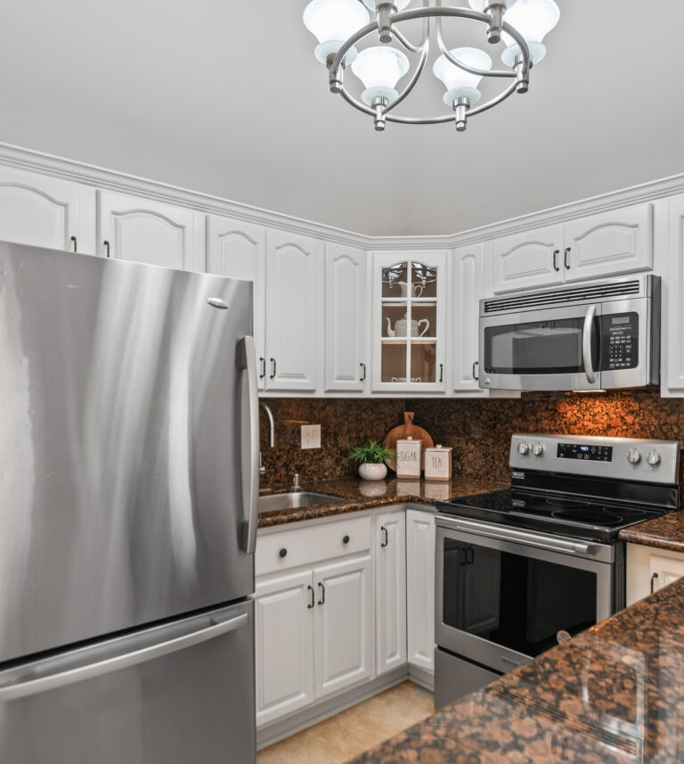 This inviting home welcomes you into an updated kitchen featuring stainless steel appliances, granite counters, ample cabinet storage, and peninsula with seating. The kitchen flows into the dining area which opens to a cozy private balcony perfect for morning coffee.
